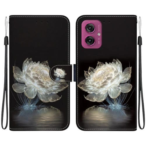 Funda de Cuero Motorola Moto G55 con Dibujo de Colores y Textura de Cristal (Peonía de Cristal)