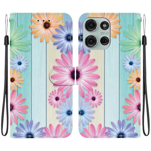 Funda de Cuero para Motorola Moto G75 5G con Dibujo de Colores y Textura de Cristal (Girasoles)
