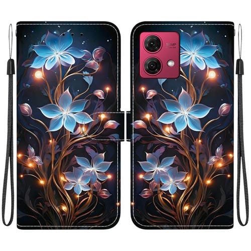 Funda de Cuero para Motorola Moto G84 con Dibujo de Colores y Textura de Cristal (Flor de Linterna Pequeña)