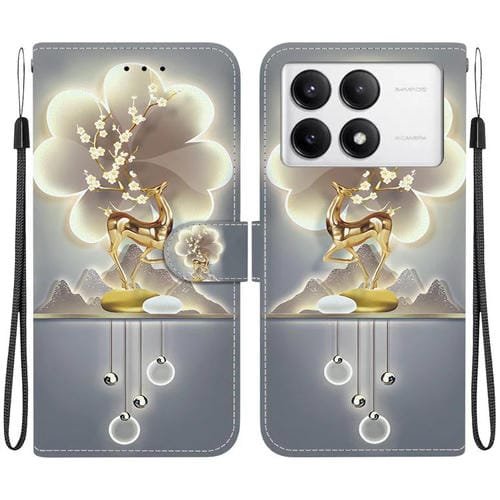 Funda de Cuero con Dibujo de Colores y Textura de Cristal para Redmi K70/K70 Pro (Ciervo Sika)