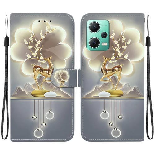 Funda de Cuero con Dibujo de Colores y Textura de Cristal para Redmi Note 12 5G/Poco X5 (Ciervo Sika)