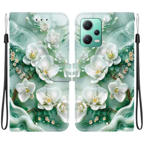 Funda de Cuero con Dibujo de Colores y Textura de Cristal para Redmi Note 12 5G/Poco X5 (Flores de Jade)