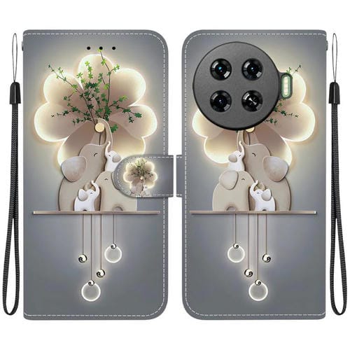 Funda de Cuero para Tecno Spark 20 Pro+ 4G con Dibujo de Colores y Textura de Cristal (Elefantes)