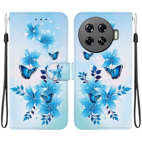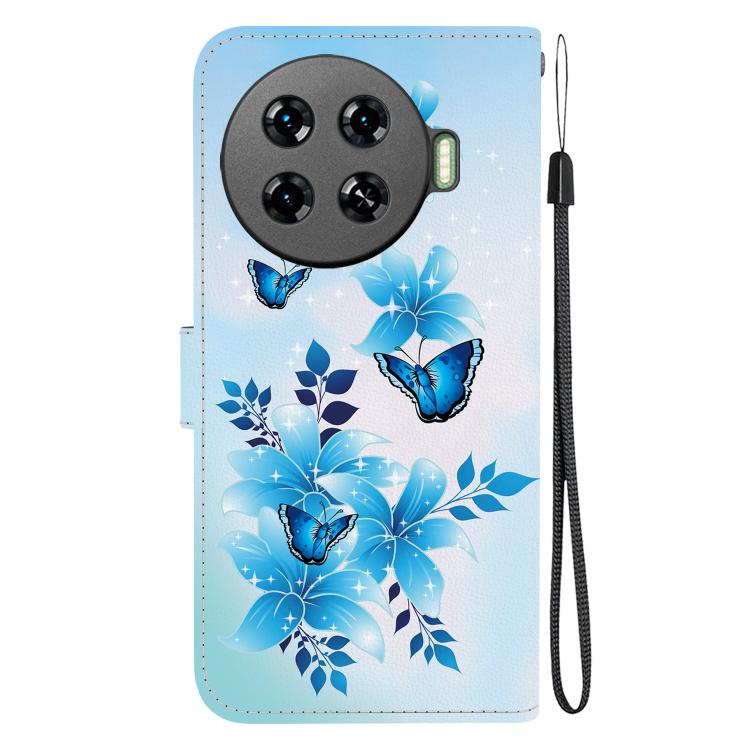 Funda de Cuero para Tecno Spark 20 Pro+ 4G con Dibujo de Colores y Textura de Cristal (Mariposas Azules)