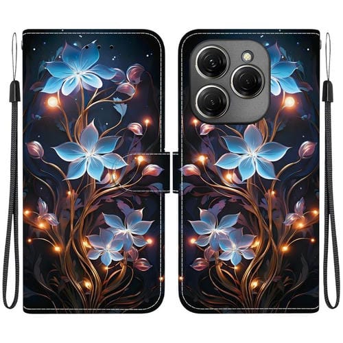 Funda de Cuero para Tecno Spark 20 Pro con Dibujo de Colores y Textura de Cristal (Flor de Linterna Pequeña)