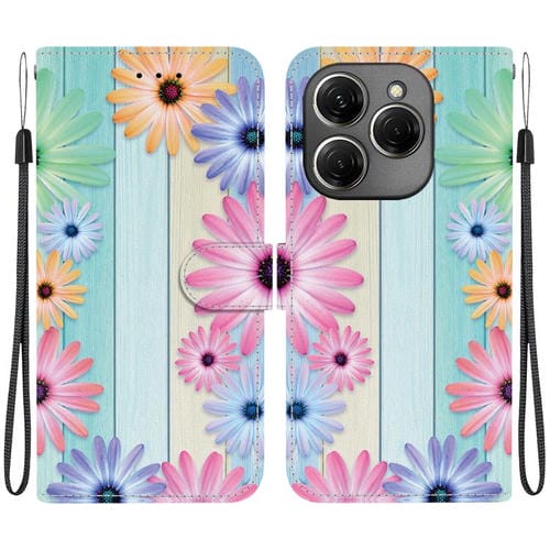 Funda de Cuero para Tecno Spark 20 Pro con Dibujo de Colores y Textura de Cristal (Girasoles)