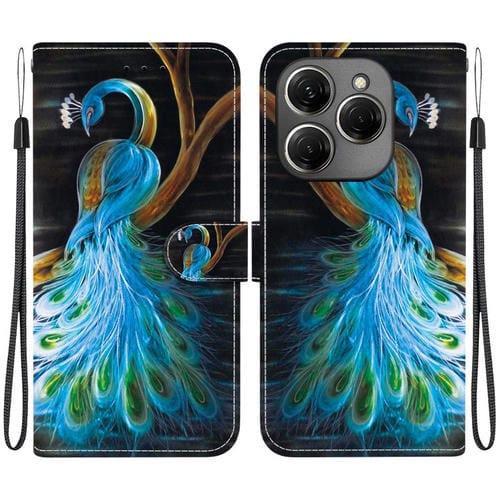 Funda de Cuero para Tecno Spark 20 Pro con Dibujo de Colores y Textura de Cristal (Pavo Real)
