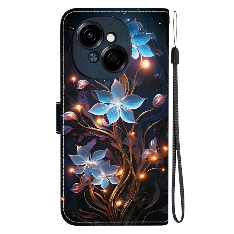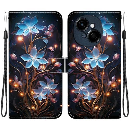 Funda de Cuero para Tecno Spark Go 1 y Pop 9 Pro con Dibujo de Colores y Textura de Cristal (Flor de Linterna Pequeña)