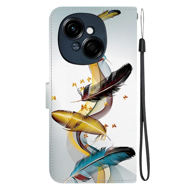 Funda de Cuero para Tecno Spark Go 1 Pop 9 Pro con Dibujo de Colores y Textura de Cristal (Plumas de Mariposa Doradas)