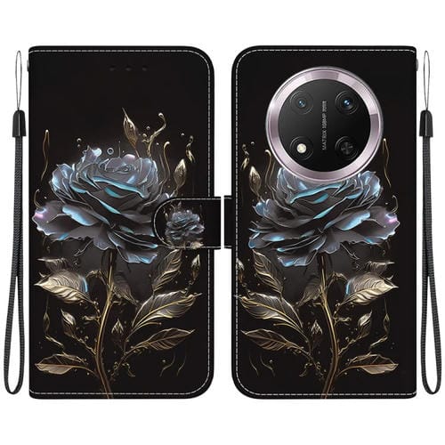 Funda de Cuero Honor X9C con Dibujo y Textura de Cristal (Rosa Negra)