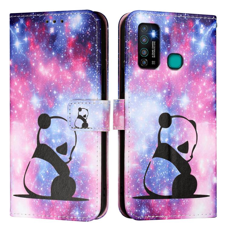 Funda de Cuero para Infinix Hot 9 y Hot 9 Pro con Diseño de Dibujos de Colores y Tejido Liso (Panda Bebé)