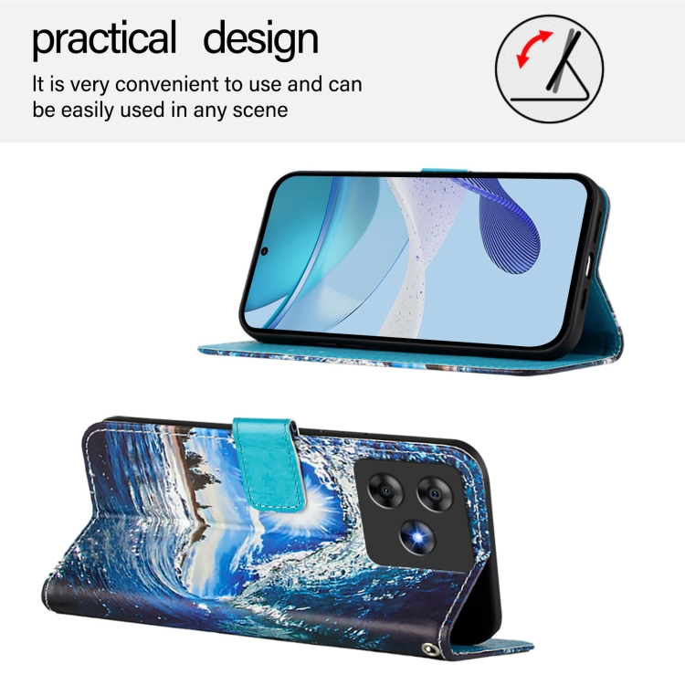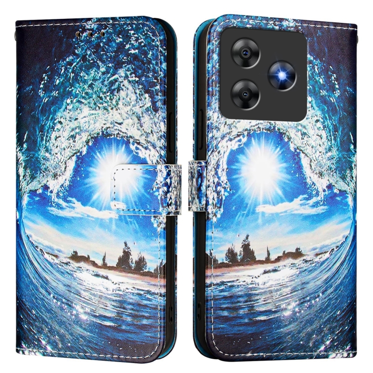 Funda de Cuero para BlackView Wave 8C con Diseño de Dibujos Ondas y Sol (Colores Lisos)