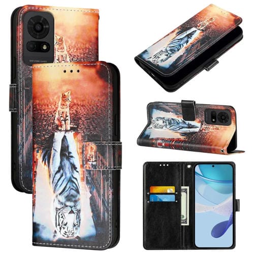 Funda de Cuero para TCL 50 Le 5G con Diseño de Gatos y Tigres (Colores Lisos)