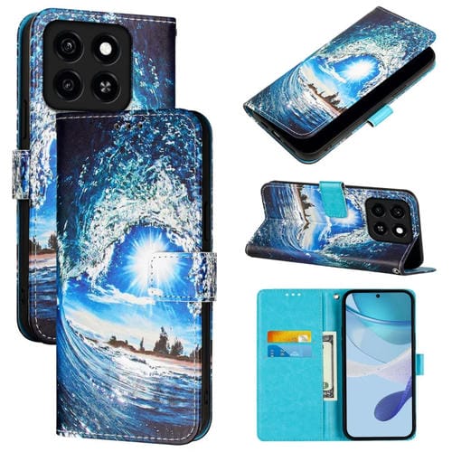 Funda de Cuero para ZTE Blade A35/A55 con Diseño de Dibujos en Colores Lisos (Ondas y Sol)