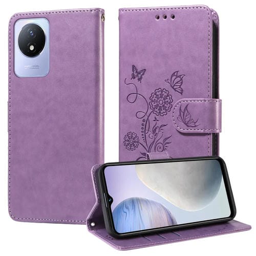 Funda de Cuero con Diseño de Mariposas y Flores En Relieve para Vivo Y02 4G / Y11 2023 / Y02A (Morado)