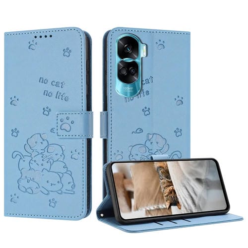 Funda de Piel Honor 90 Lite/X50I 5G con Diseño de Gatito en Relieve y Cordón (Azul)