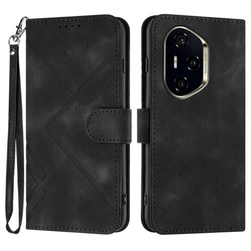 Funda de Cuero para Honor 300 Pro y Honor 300 Ultra con Diseño de Líneas y Tacto Suave (Negra)