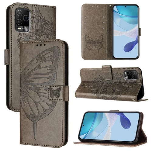 Funda de Cuero Blu View 5 Pro Diseño Mariposa Relieve (Gris)