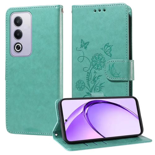 Funda de Cuero con Diseño de Mariposas y Flores En Relieve para Oppo A3 Pro 5G Global/India (Verde)