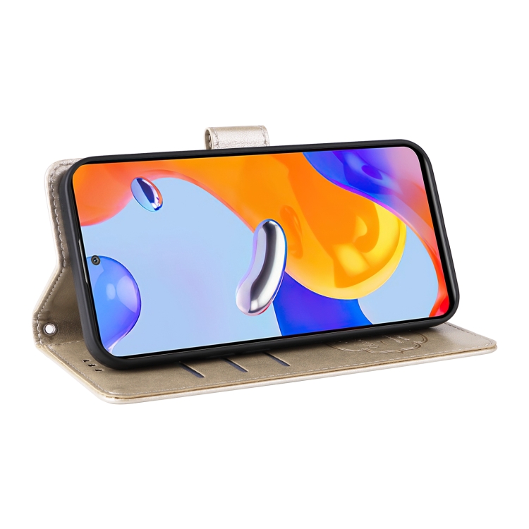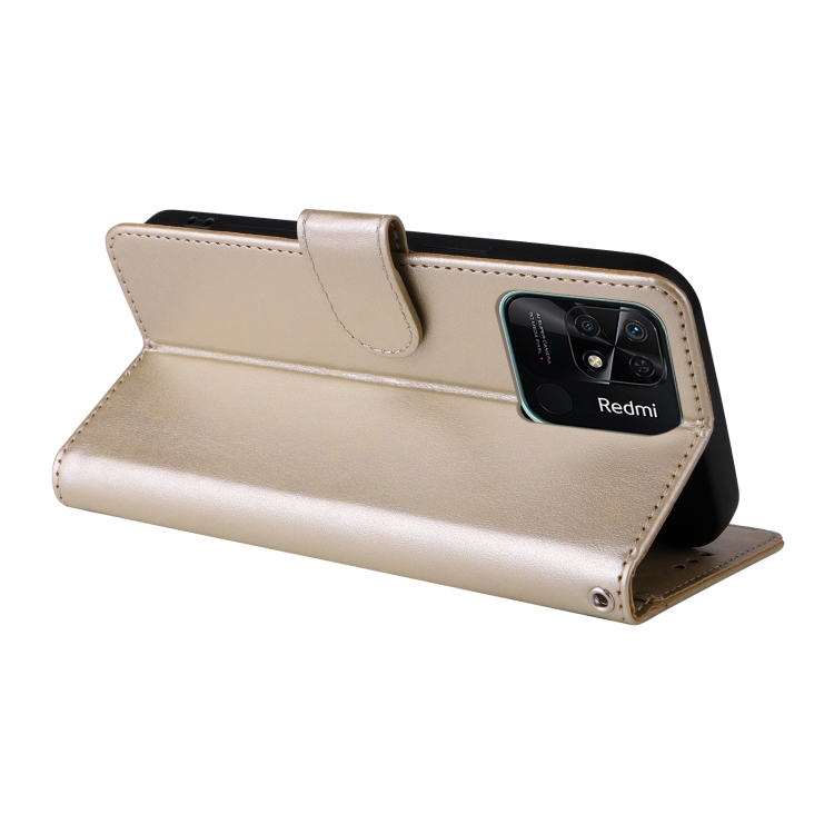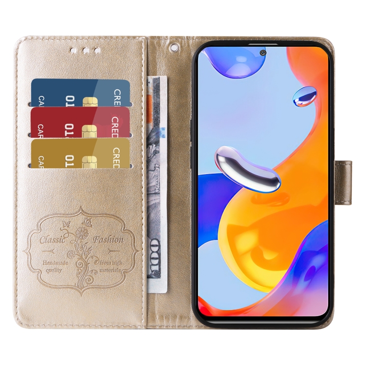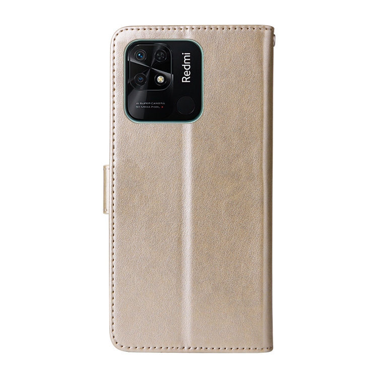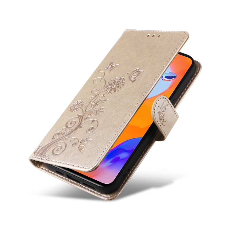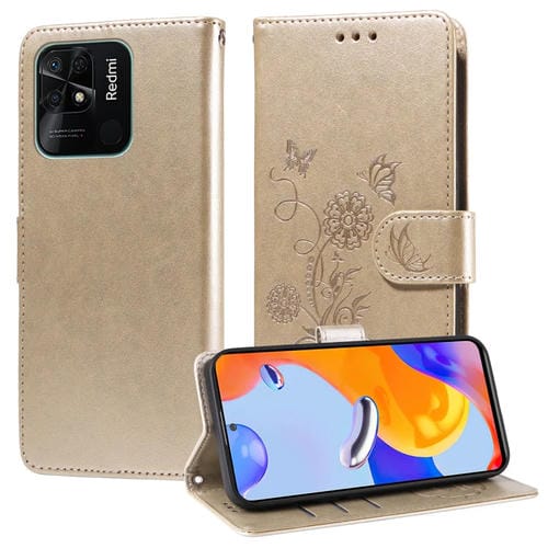 Funda de Cuero con Diseño de Mariposas y Flores En Relieve para Redmi 10C/10 India/10 Power (Dorada)