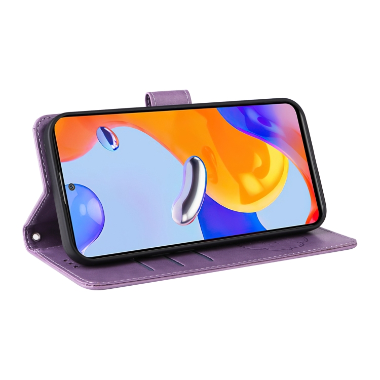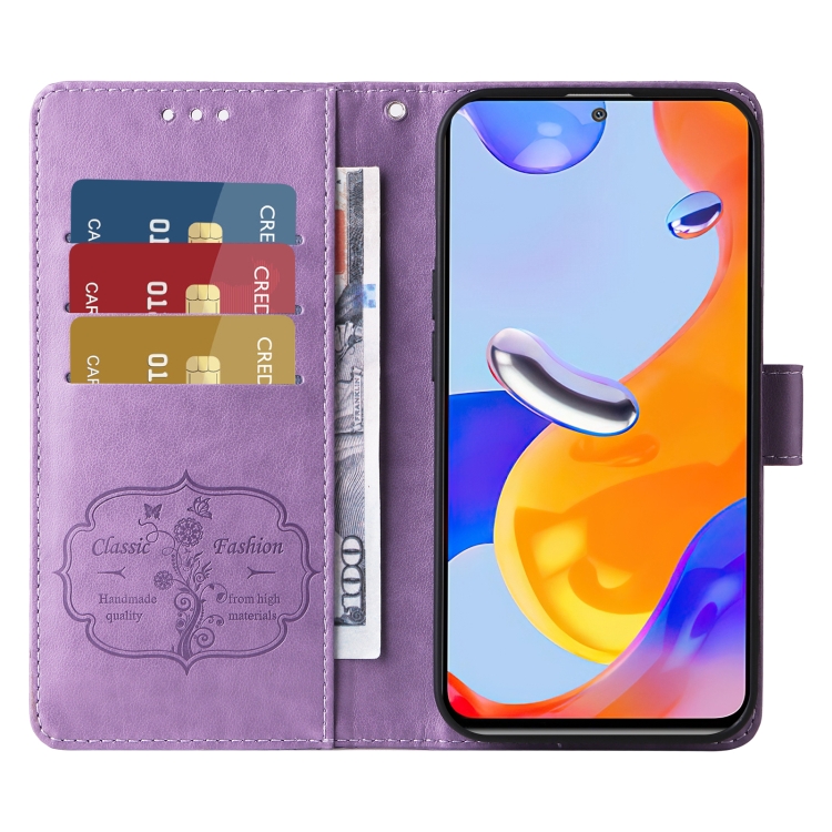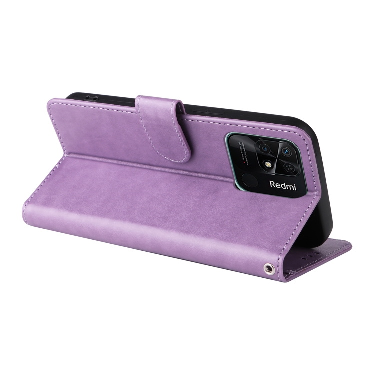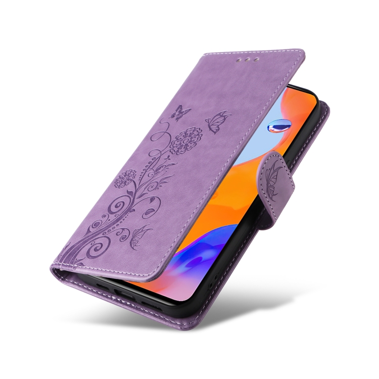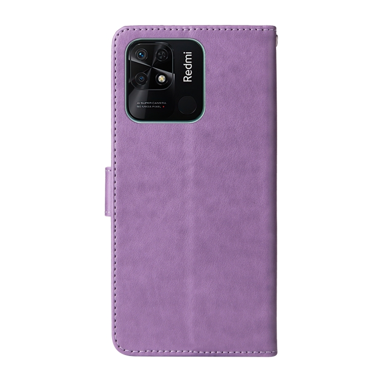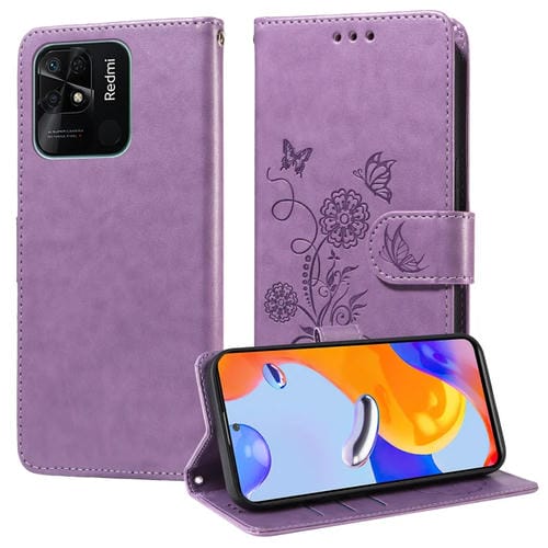 Funda de Cuero con Diseño de Mariposas y Flores En Relieve para Redmi 10C/10 India/10 Power (Morado)