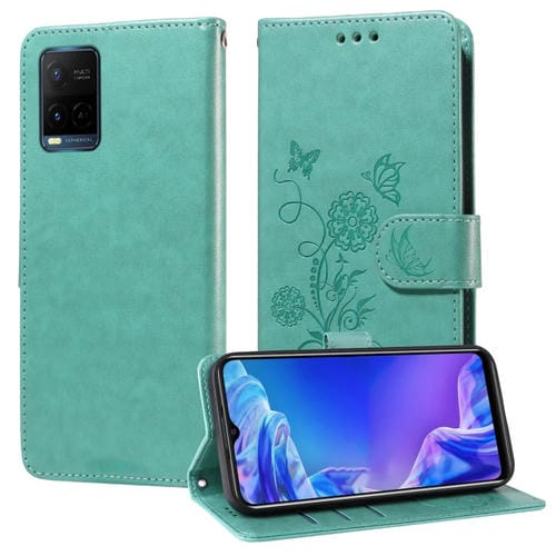 Funda de Cuero con Diseño de Mariposas En Relieve para Vivo Y21 2021 / Y21S / Y33S 4G (Verde)