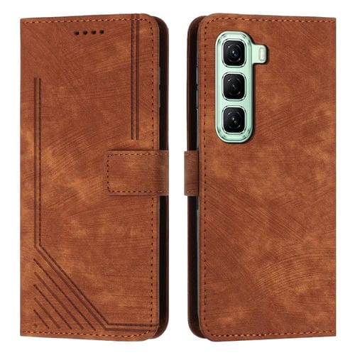 Funda de Cuero Infinix Hot 50 5G con Diseño de Rayas y Tacto Sedoso (Marrón)