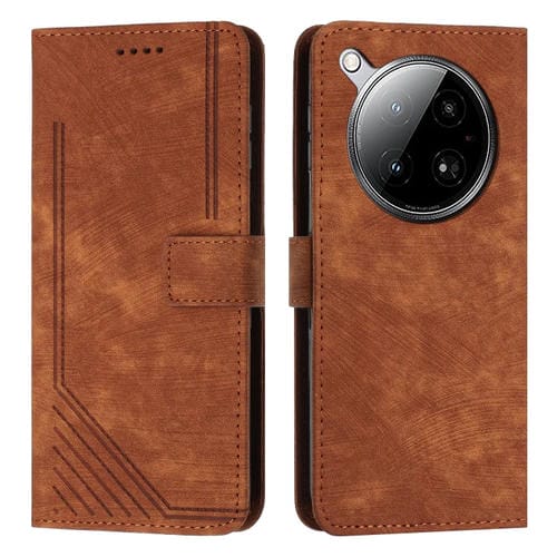 Funda de Cuero para Infinix Zero 40 4G con Diseño de Rayas y Tacto Sedoso (Marrón)