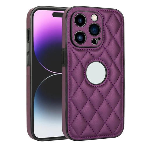 Funda de Cuero para iPhone 12 Pro con Diseño de Rombos (Morado Oscuro)