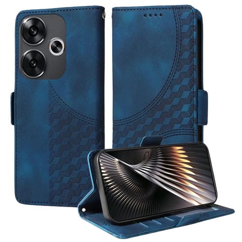 Funda de Cuero con Diseño de Rombos y Estrellas En Relieve para Xiaomi Poco F6 (Azul)