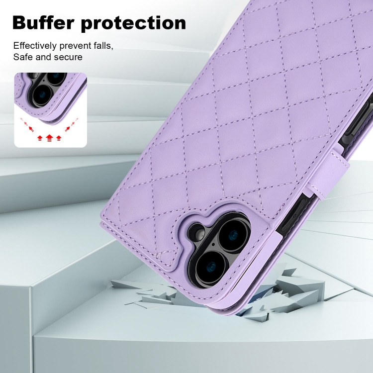 Funda de Cuero iPhone 16 Plus Diseño de Rombos Multifunción (Morado)