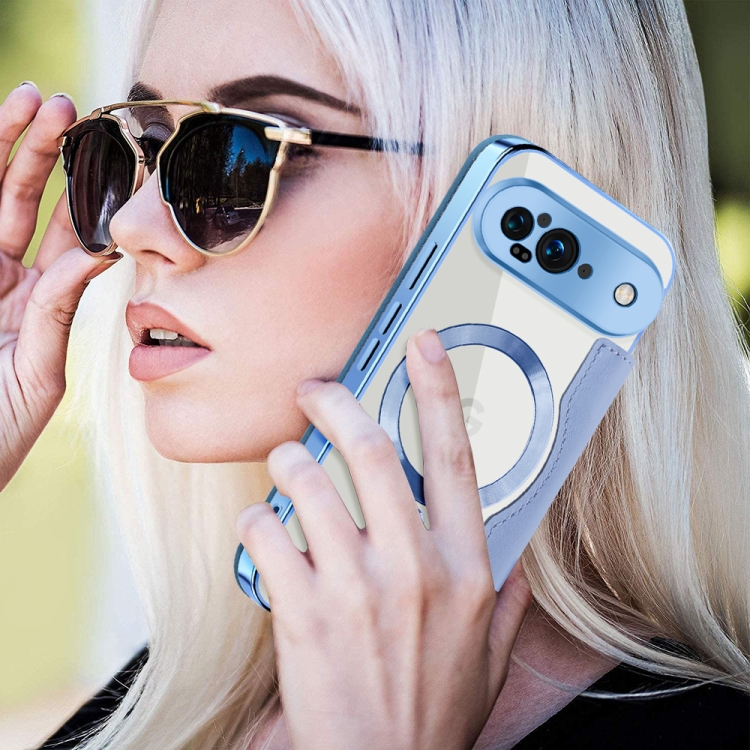 Funda de Cuero con Diseño de Rombos y Protección RFID Magsafe para Google Pixel 9 (Azul)