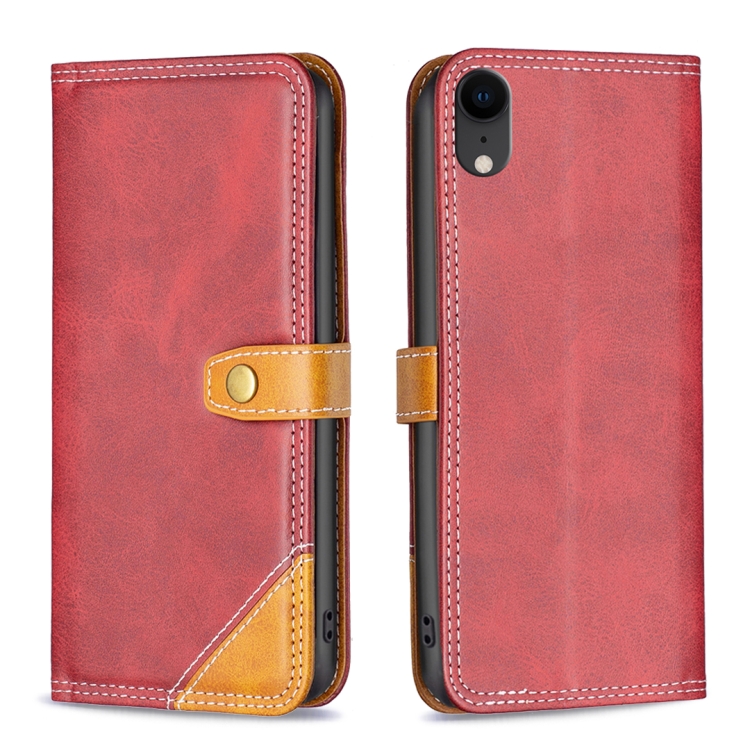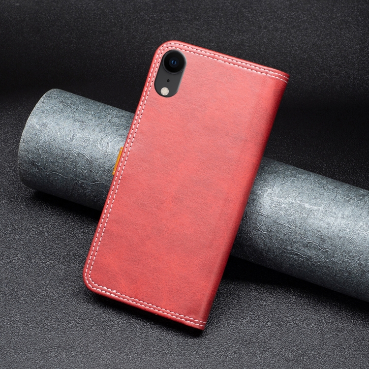 Funda de Cuero para iPhone Xr con Doble Hilo de Coser (Rojo)