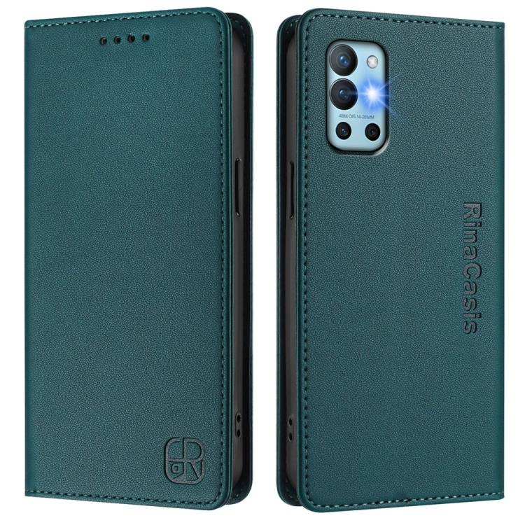 Funda de Cuero con Doble Pliegue y Succión Magnética para OnePlus 9R y 8T Rc01 (Verde Oscuro)