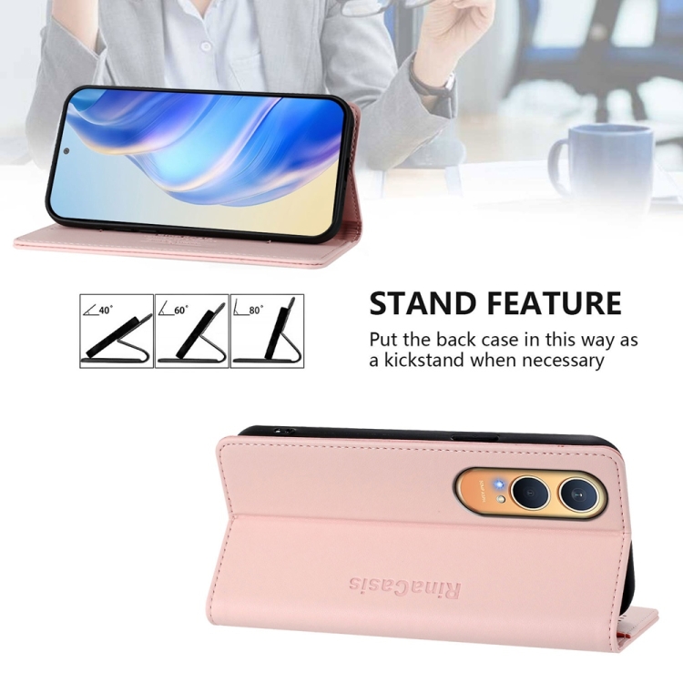 Funda de Cuero con Doble Pliegue y Succión Magnética para OnePlus Nord Ce4 Lite Rc01 (Rosa)