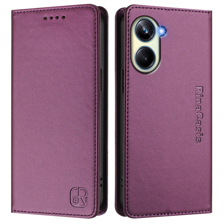 Funda de Cuero con Doble Pliegue y Succión Magnética para Realme 10 Pro 5G Rc01 (Violeta)