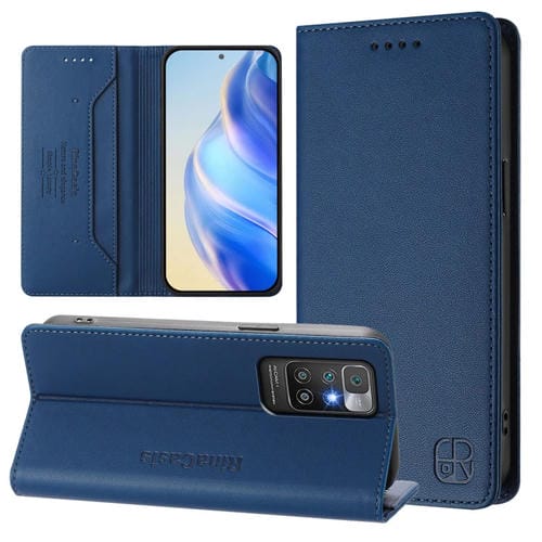 Funda de Cuero con Doble Pliegue y Succión Magnética para Redmi 10 4G 2021/2022 Global Rc01 (Azul Oscuro)