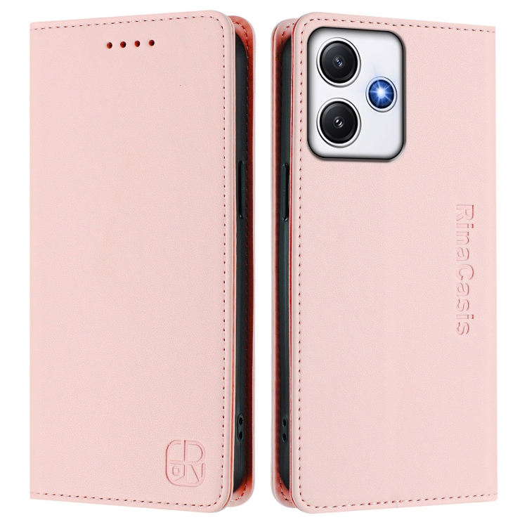 Funda de Cuero con Doble Pliegue y Succión Magnética para Redmi 12 5G/4G Global/Note 12R Rc01 (Rosa)