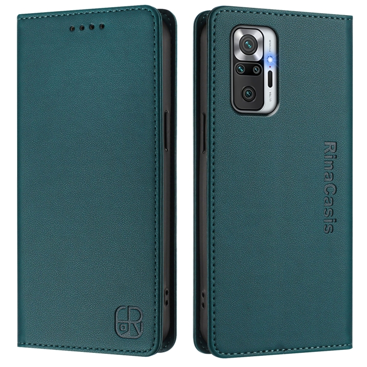 Funda de Cuero con Doble Pliegue y Succión Magnética para Redmi Note 10 Pro 4G/Note 10 Pro Max Rc01 (Verde Oscuro)