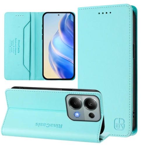 Funda de Cuero con Doble Pliegue y Succión Magnética para Redmi Note 13 Pro 4G Global Rc01 (Verde Menta)