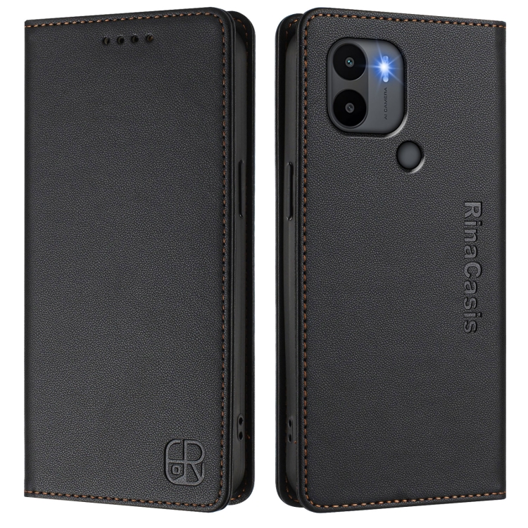 Funda de Cuero con Doble Pliegue y Succión Magnética para Teléfono Redmi A1+ 4G / Xiaomi Poco C50 4G Rc01 (Negra)
