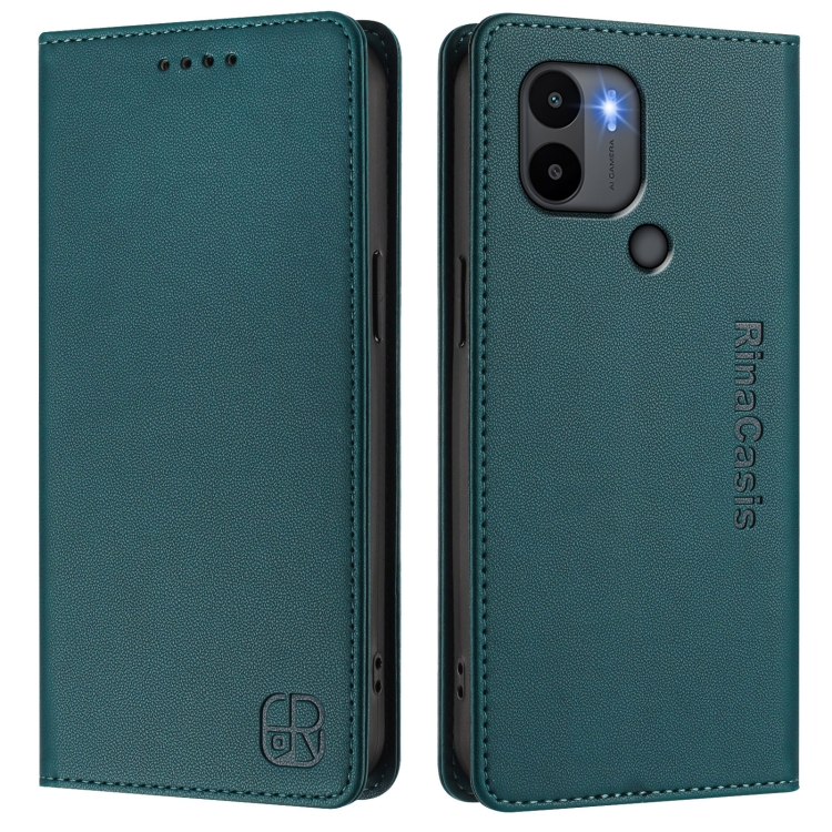 Funda de Cuero con Doble Pliegue y Succión Magnética para Teléfono Redmi A1+ 4G / Xiaomi Poco C50 4G Rc01 (Verde Oscuro)