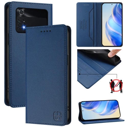 Funda de Cuero con Doble Pliegue y Succión Magnética para Teléfono Xiaomi Poco X4 Pro 5G Rc01 (Azul Oscuro)