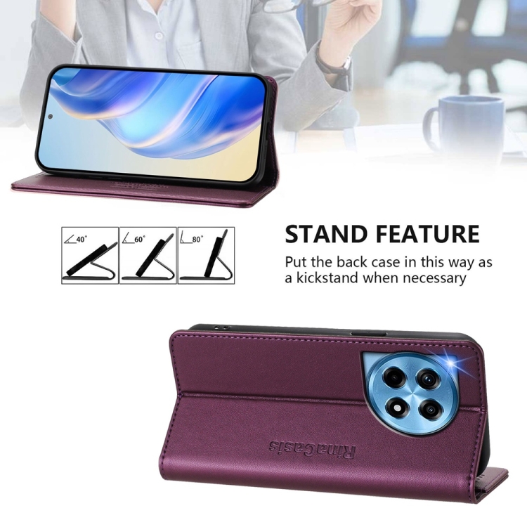 Funda de Cuero con Doble Pliegue y Succión Magnética RFID para OnePlus 12 Global Rc01 (Violeta)