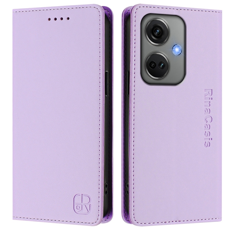 Funda de Cuero con Doble Pliegue y Succión Magnética RFID para OnePlus Nord CE3 RC01 (Morado Claro)