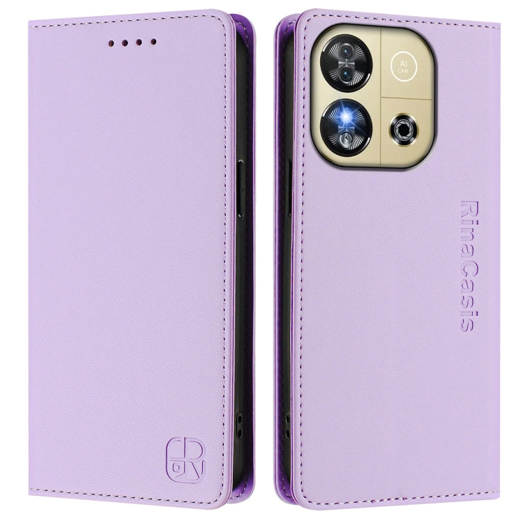 Funda de Cuero con Doble Pliegue y Succión Magnética Rfid para Oukitel C57/C57S/C57 Pro Rc01 (Morado Claro)