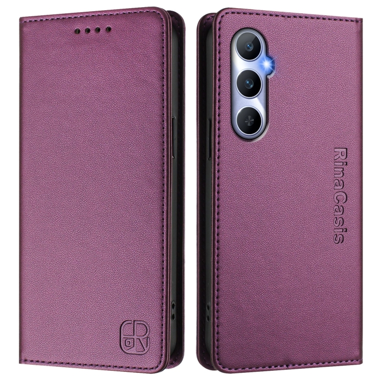 Funda de Cuero con Doble Pliegue y Succión Magnética Rfid para Realme C65 4G Global Rc01 (Violeta)