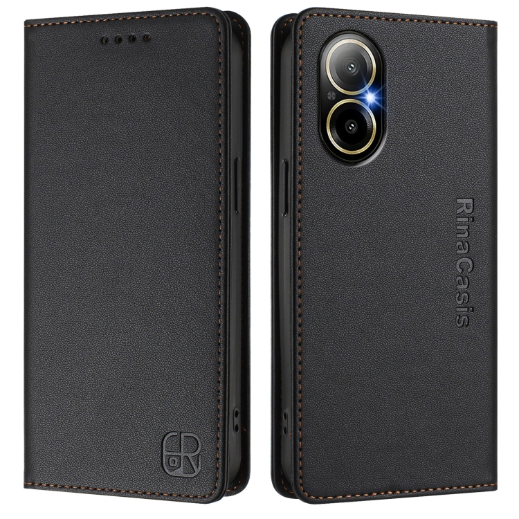 Funda de Cuero con Doble Pliegue y Succión Magnética Rfid para Realme C67 4G Global Rc01 (Negra)
