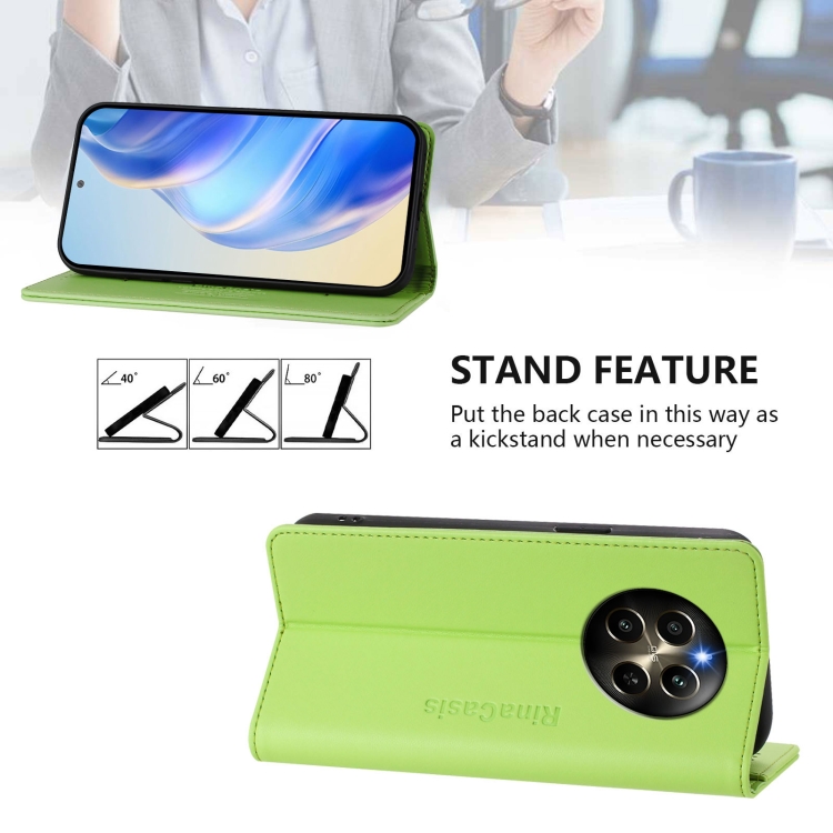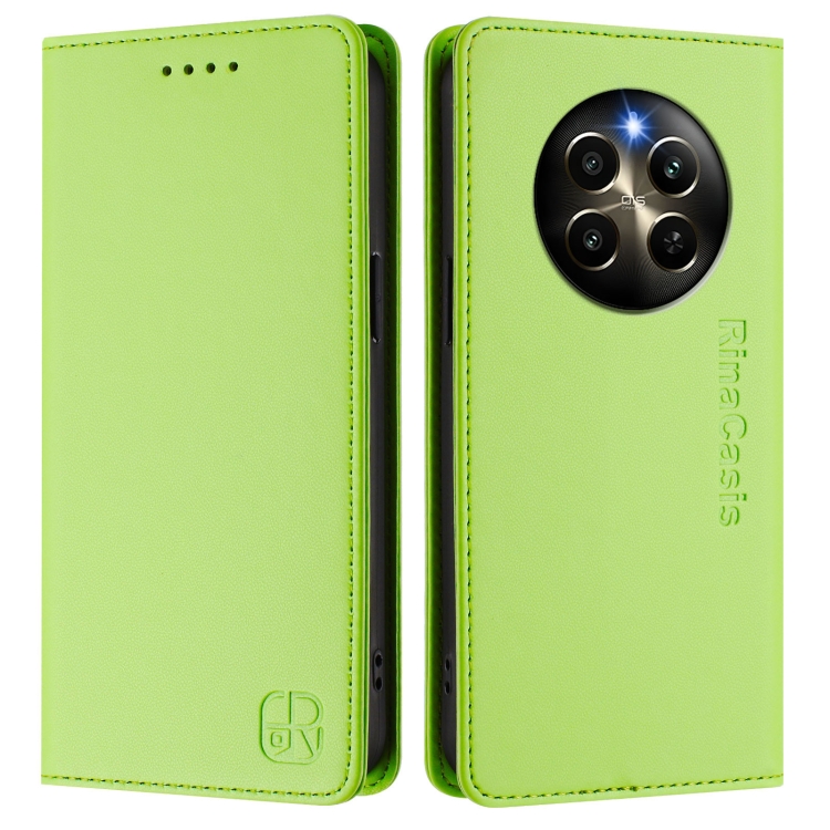 Funda de Cuero con Doble Pliegue y Succión Magnética Rfid para Realme P1 Pro Rc01 (Verde Hierba)