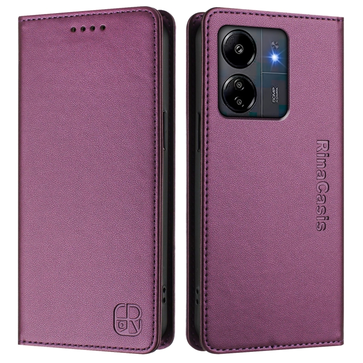 Funda de Cuero con Doble Pliegue y Succión Magnética Rfid para Redmi 13C 5G/4G Global Rc01 (Violeta)